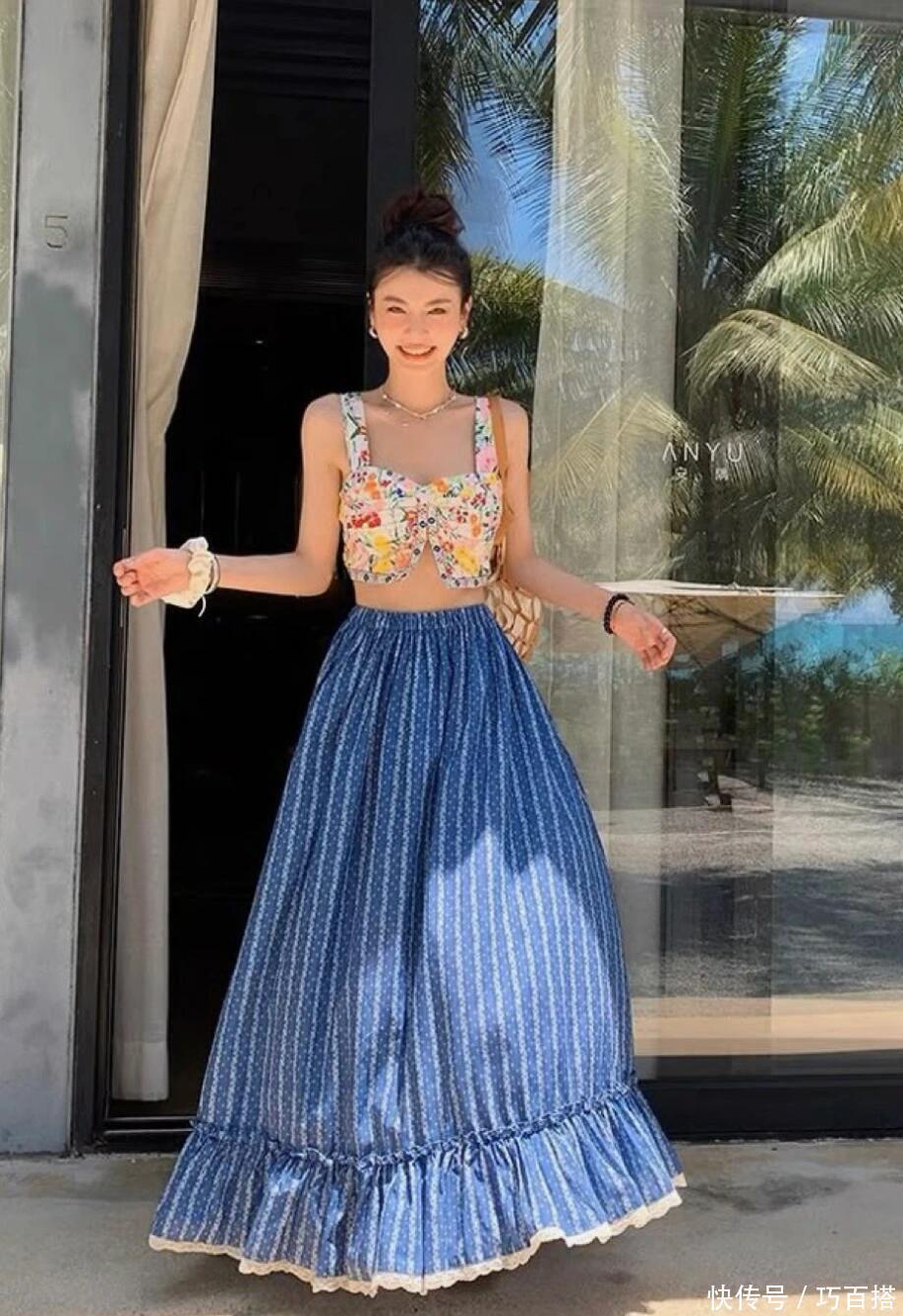 大家不要觉得春天半裙没有性价比,除了春天配长袖外穿出门外,夏天配短袖、吊带外穿出门,也能轻松赚足回头率。