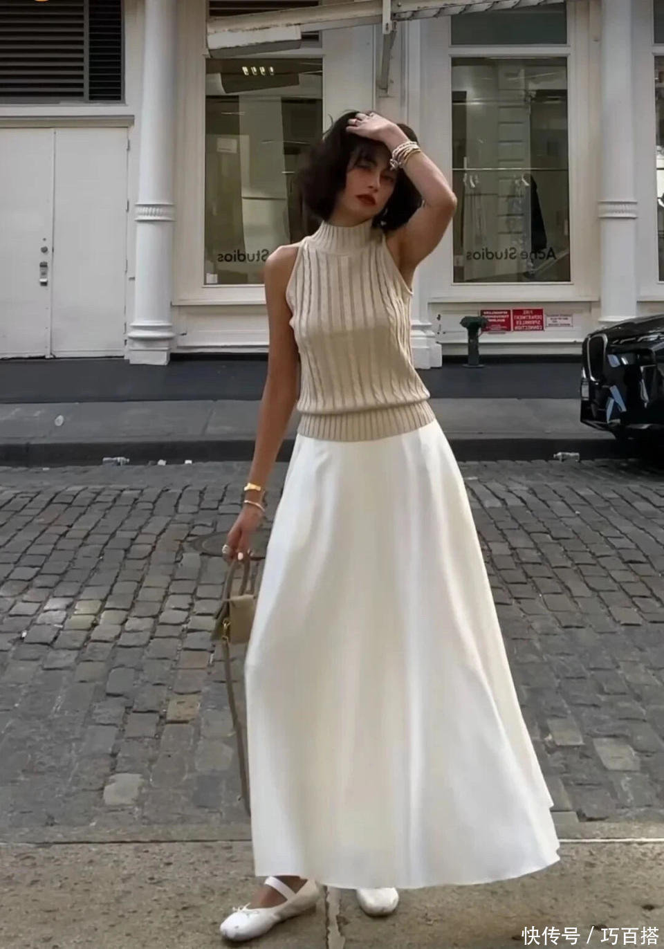 选择流行款半裙的姐妹也不用担心,流行款上衣+流行款半裙或基础款上衣+流行款半裙都能突出重围,成为时髦精们的“劲敌”,肤白貌美身材好的姐妹照搬照抄博主身上这套造型,简直无敌!