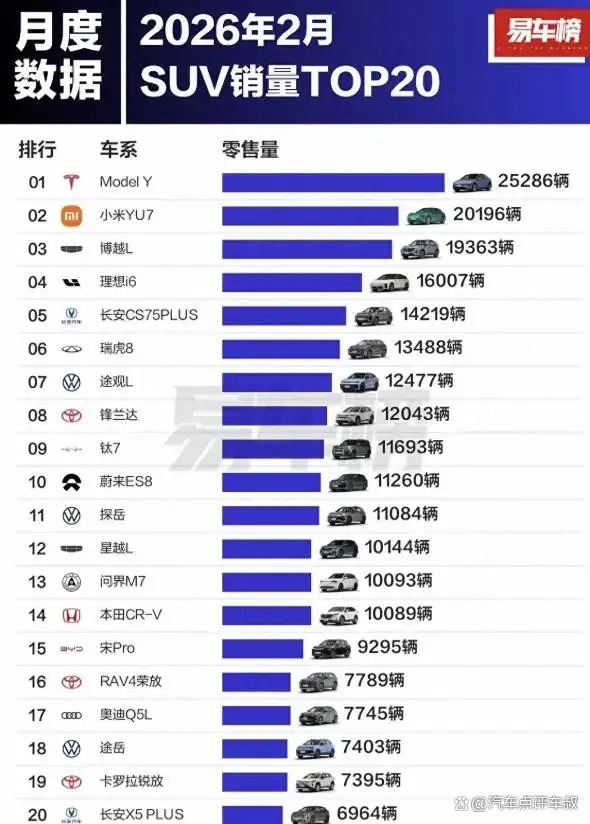 今天咱们就扒一扒这份榜单,聊聊2月SUV市场的那些反转与真相,看看谁在裸泳,谁在悄悄憋大招!