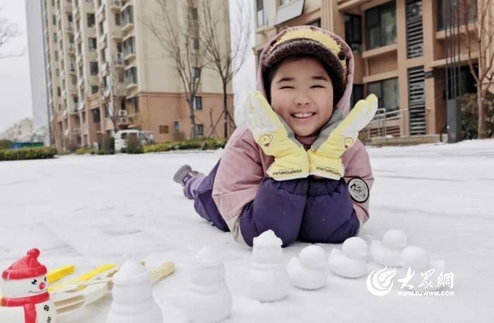 雪后,孩子趴在雪地上,和亲手堆的一排小雪人合影。这般无忧无虑的模样,藏着生活最本真的甜。(赵娟)