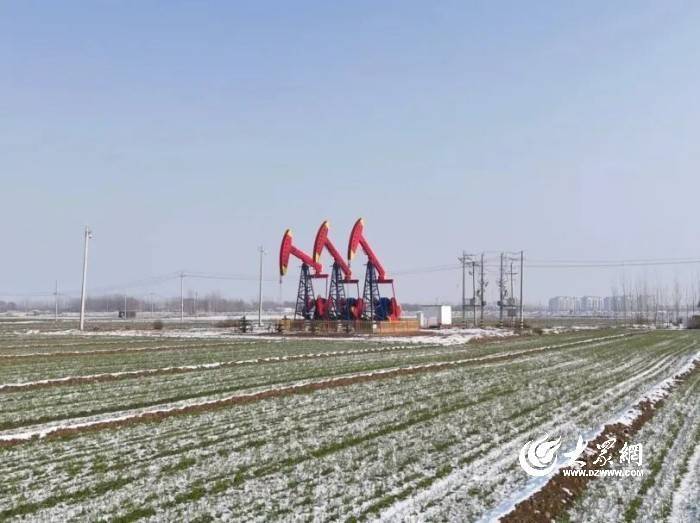 雪粒轻覆在麦田的绿毯上,临盘采油厂的红色抽油机像忠诚的守护者,在蓝天与地平线之间,诉说着对这片土地的深情。(孙志惠)