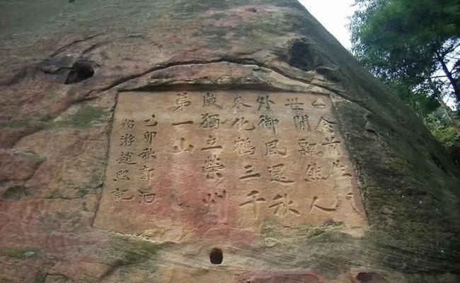 荣德山的崖壁,镌刻着一部跨越千年的石头史书。半山崖壁上刻有的《绍熙判府曹公老君山保守记》,碑冠精美,居中曹诗端坐,左右文武相拥,威严可敬。有唐玄宗开元二十年(732年)荣州刺史薛高丘参道所立的薛髙邱摩崖碑,是荣县现存最早的摩崖碑,碑文“多载仙灵事”。山脚石壁有赵熙1915年游山七绝:“一念前生堕世间,飘然人外御风还。秋来化鹤三千岁,独立荣州第一山。”沿梯而上,岩壁间还有郭曼军、郭洄、郭次纯的游山题诗,文采与仙道韵味兼具,将家国烽烟与文人雅趣一并凝于石上。